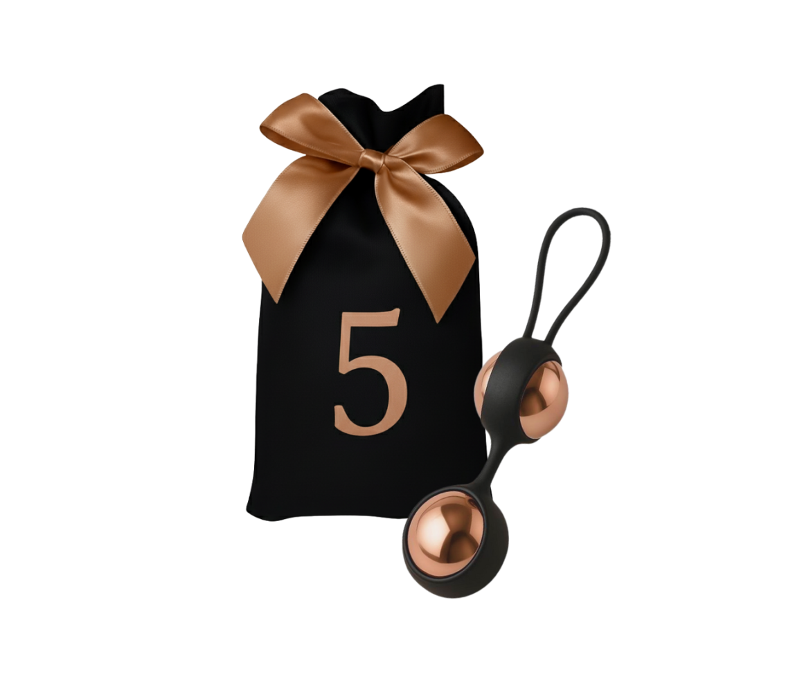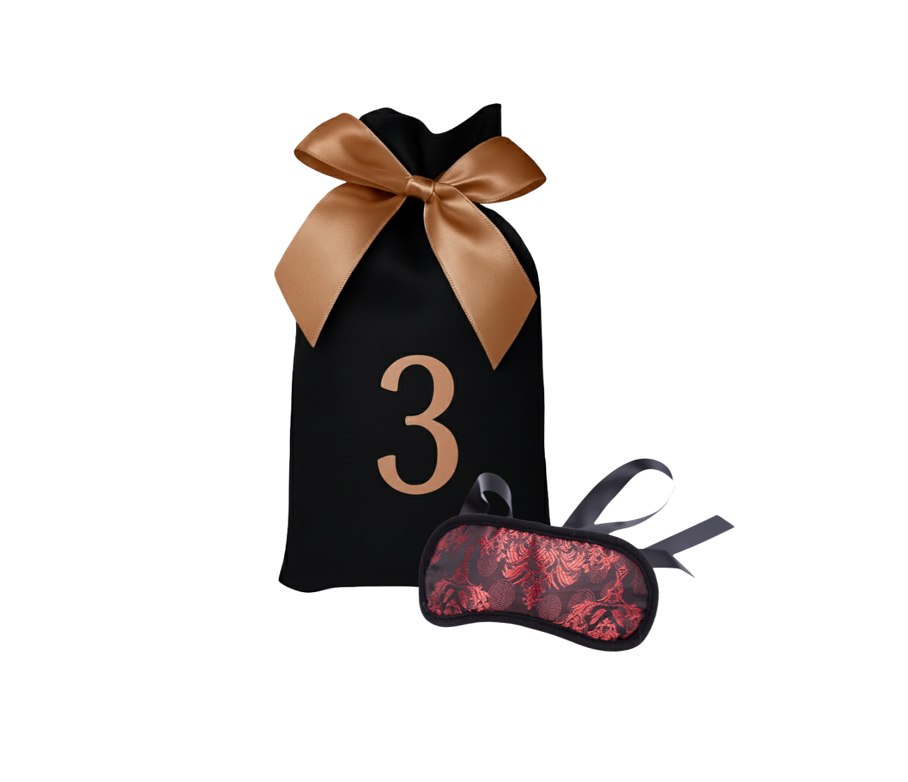 Všechny erotické pomůcky jsou, kromě kosmetiky a masky na oči, sladěné v odstínech černé a rose gold barvy. Ladí tak s elegantním designem látkových pytlíčků.