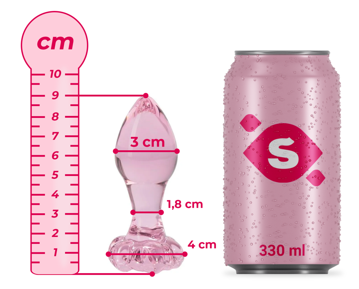 Anální kolík Flower Glass Plug je vyrobený z čirého pevného skleněného materiálu. Má dobré vlastnosti k análním hrátkám, protože jeho povrch je hladký, chladivý, neporézní a hlavně bez zápachu. Proto je bezpečný k tělu, stejně jako silikon. Mnohem lépe ho udržíte v čistotě. Zachovává určitou teplotu, takže ho můžete zahřát nebo naopak ochladit ve studené vodě. Pocity budou pokaždé jiné.