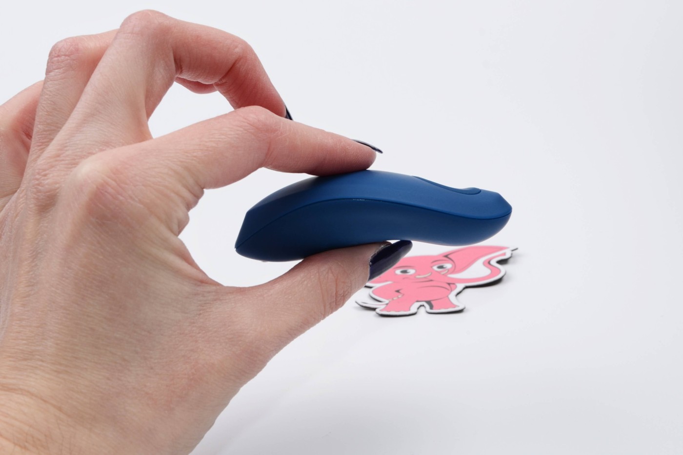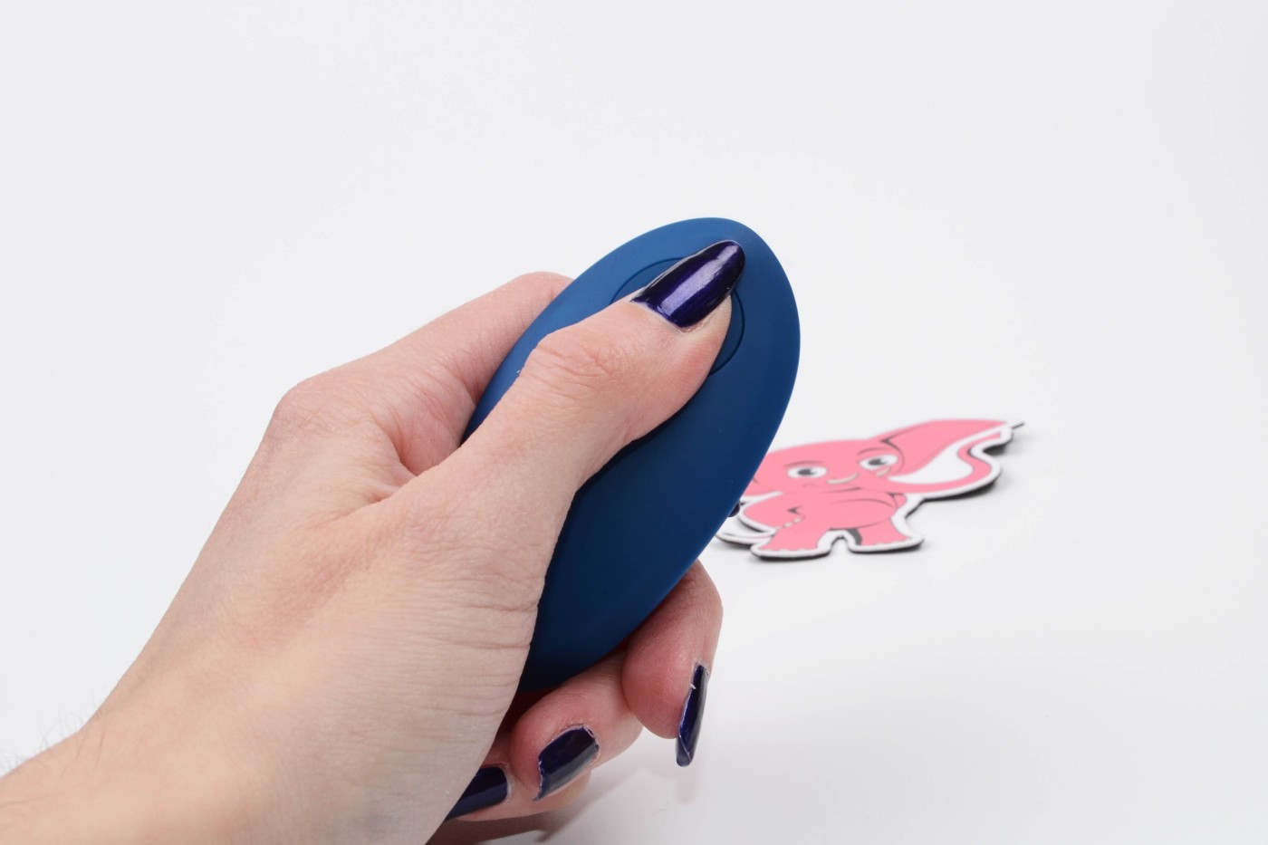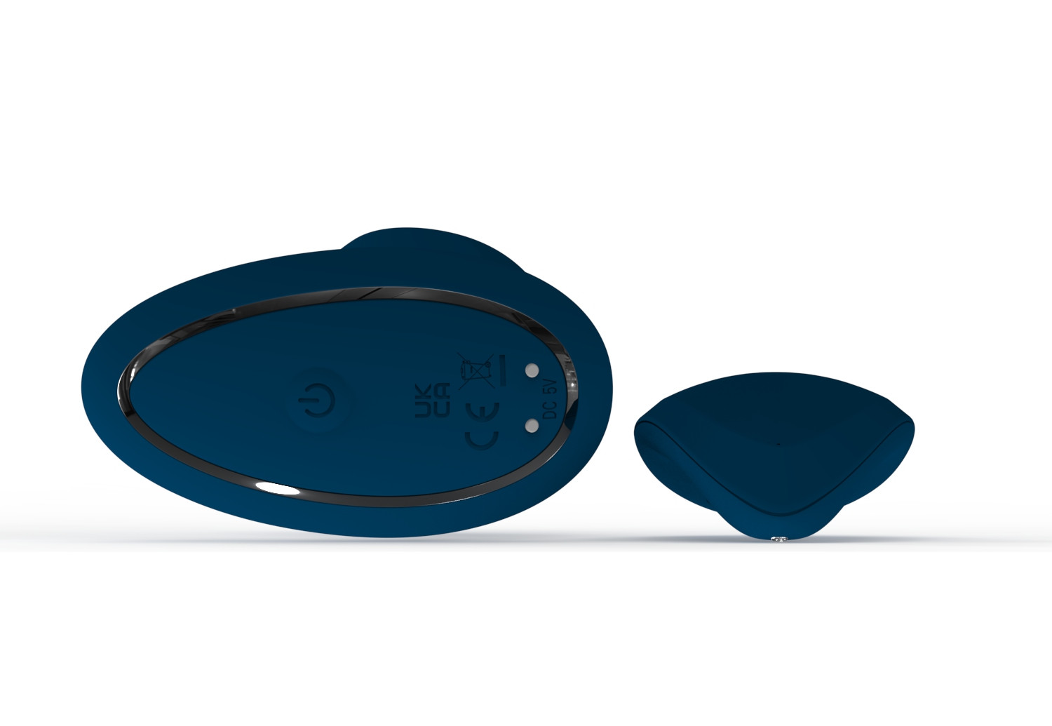 Designově krásný, tmavě modrý anální kolík zaoblených tvarů má výrazně zakřivenou špičku, která je docela baculatá. Směrem k patce se ale pomůcka zužuje a její tenký krk navazuje na elipsovitou patku, která hezky zapadne mezi půlky. Oválný ovladač se dobře drží v ruce. Celkově pomůcka vypadá luxusně a můžete ji darovat jako dárek.
