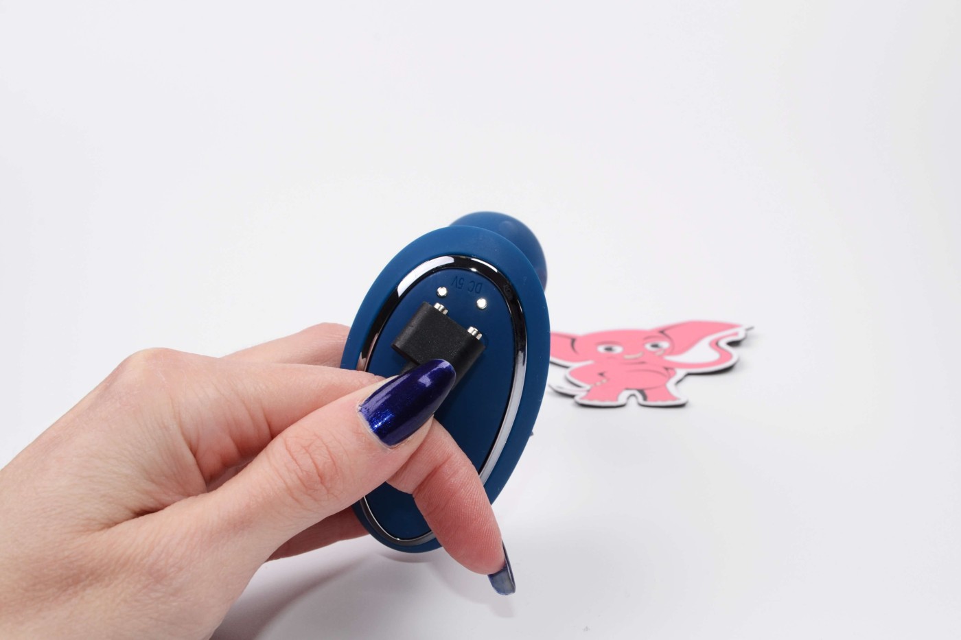 Pomůcku výrobce posílá z cca 1/2 nabitou. Před prvním použitím ji ale doporučujeme dobít do plna, abyste prodloužili životnost i výdrž akumulátoru. Magnetický konektor přiloženého USB kabelu přiložte ke dvěma kovovým výčnělkům, které najdete na spodní straně análního kolíku. Úplně stejně dobijete i dálkový ovladač.