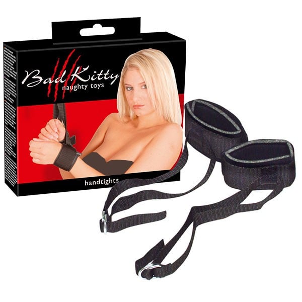 Bad Kitty textilní erotická pouta na bdsm sex. pouta na nohy nebo ruce jsou spojeny s 2 popruhy. Pouta se zapínají na suchý zip. Látkové popruhy mají nastavitelnou délku, což umožňuje pohodlné připoutání o nábytek a v různých polohách.