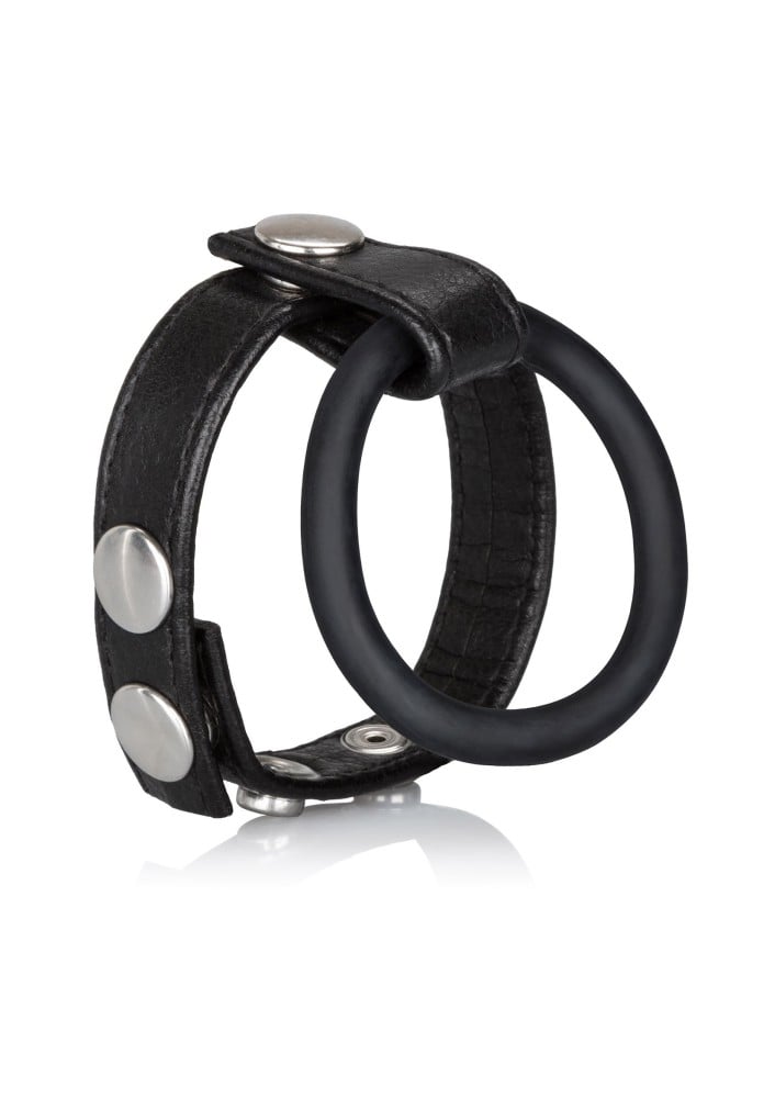 Medium Leather Ball Spreader jsou dva kroužky na penis a varlata. Kožený kroužek si nasaď za šourek a gumový kroužek na kořen penisu.