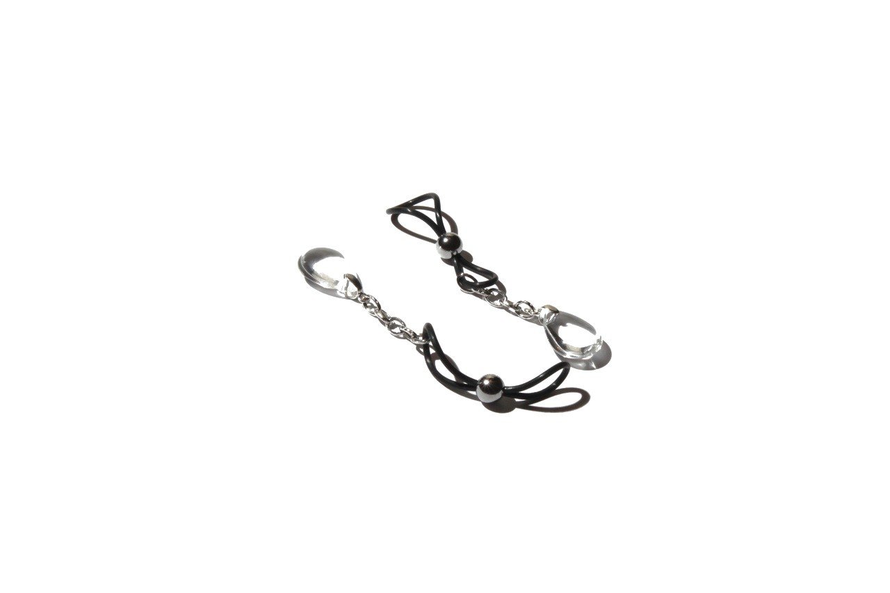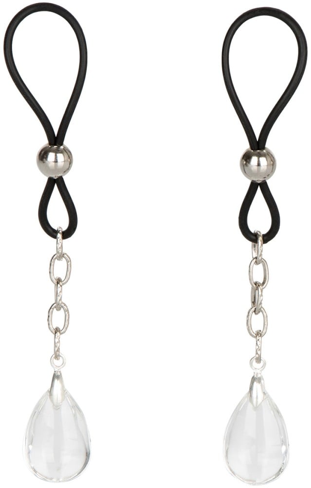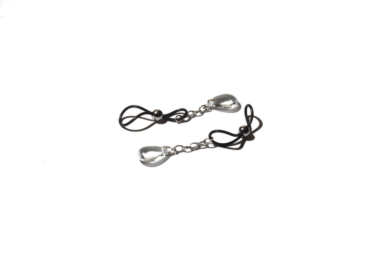 Silikonová smyčka sevřená stahovací kuličkou připomíná číslovku 8. Na smyčku navazuje řetízek, složený z pěti malých oček. Na rozdíl od krásně hladké kuličky, řetízek zdobí malinké ozdobné vrypy, které mu přidávají na lesku. Bradavky tak dostanou opravdu luxusní šmrnc. Jádrem celého ozdobného skvostu na posledním očku řetízku je kamínek, jemně zpracovaný do tvaru vodní kapky. Tím přidá celému přívěsku nádech romantiky.