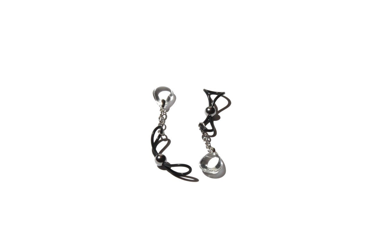 Sytě černé smyčky krásně doplňuje chromovaný lesk navlečené kuličky. Řetízky díky vrypům dostávají radostný stříbřitý odlesk, který přechází k třpytivým, ale ledově čirým kapkám křišťálu.