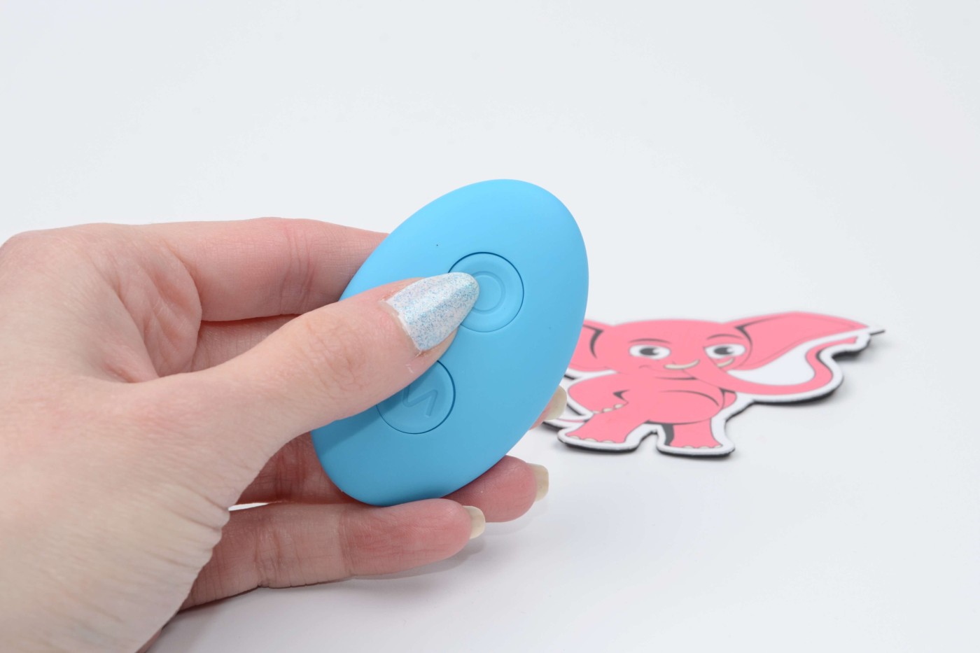 Na dálkovém ovládání jsou dvě tlačítka. Krátkým stisknutím tlačítka se symbolem M přepnete vibrační režimy. Krátkým stisknutím tlačítka se symbolem kolečka zastavíte vibrační programy.