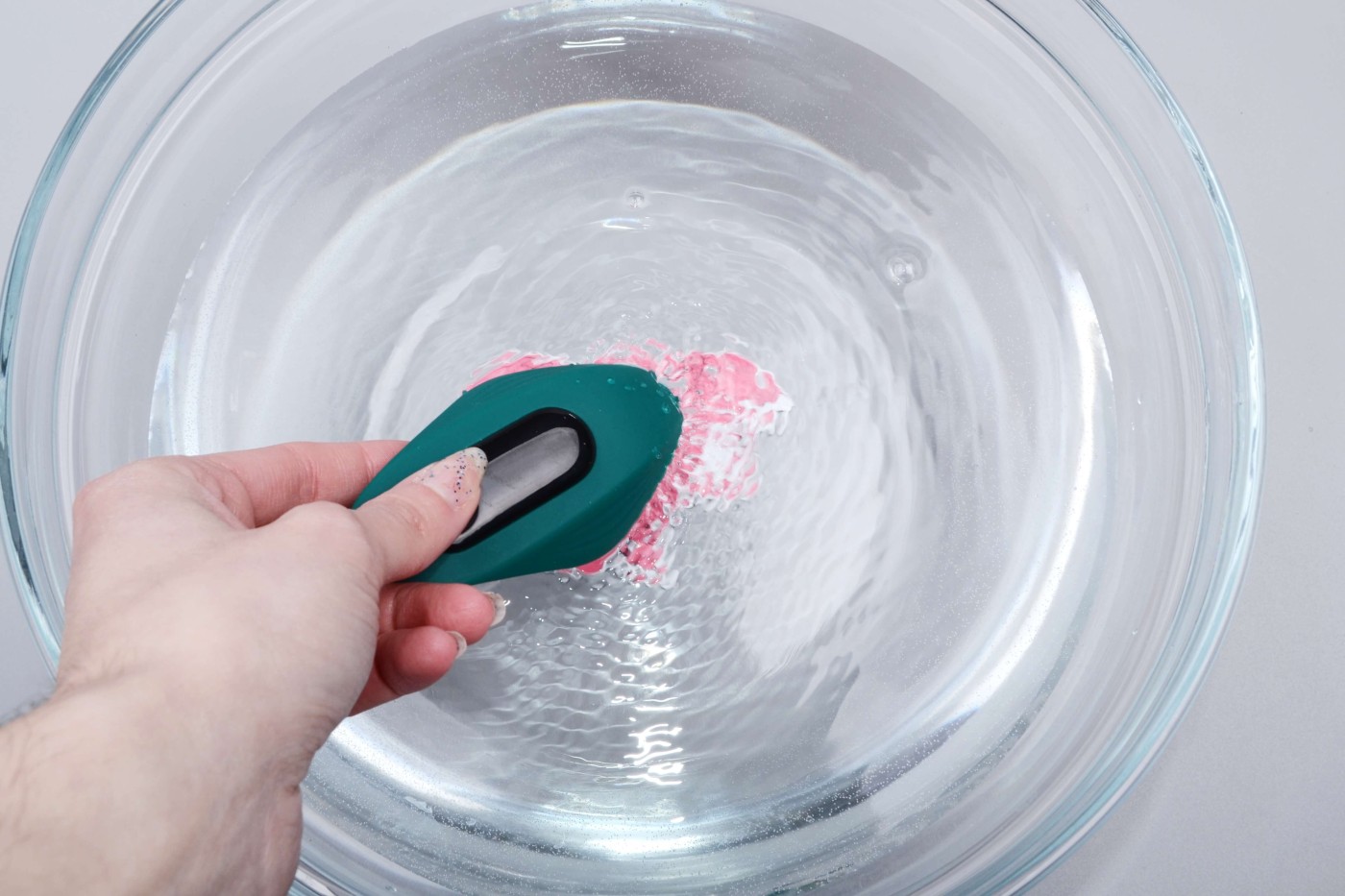 Vodotěsný vibrátor umyjete raz dva. Před i po každém použití ho namydlete a opláchněte proudem vlažné vody. Čističe erotických pomůcek zbaví pomůcku všech nečistot, a to i těch mikroskopických, kterých byste si na první pohled nevšimli. Stačí ji jen nastříkat na povrch, nechat minutku působit a pak opláchnout. Doporučujeme při čištění vytáhnout vibrační těleso a umýt a otřít i vnitřní část pomůcky. Nakonec celý vibrátor pečlivě osušte ručníkem a schovejte ho do textilního pytlíku nebo originální krabičky. Všechny erotické pomůcky ve svém šuplíku slasti skladujte odděleně. Zabráníte tak tomu, aby na sebe jejich různorodé materiály reagovaly a poškozovaly se.