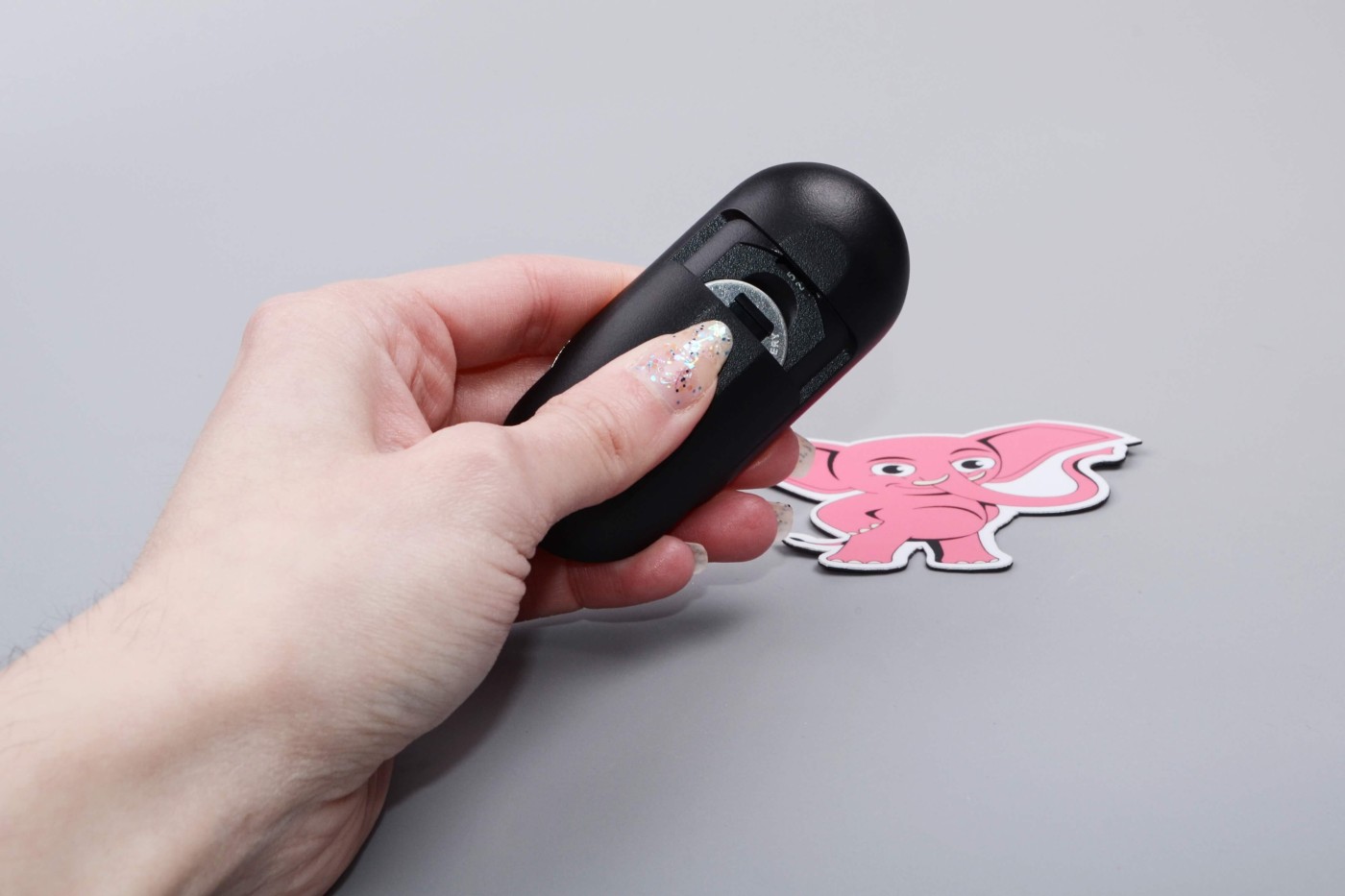 Dálkový ovladač funguje díky knoflíkové baterie typu CR 2032. Tu vám výrobce posílá už vloženou a chráněnou bezpečnostní fólií před vybitím přímo v ovladači. Druhý kus pak najdete přiložený v krabičce. Před prvním použitím musíte ochrannou fólii z ovladače vytáhnout. To uděláte tak, že pomocí palce přiloženého na zadní stranu ovladače sejmete kryt silným tahem v protisměru šipky, kterou výrobce naznačil na krytu. Po odstranění fólie nebo výměně baterie pak krytku zasuňte zpátky.