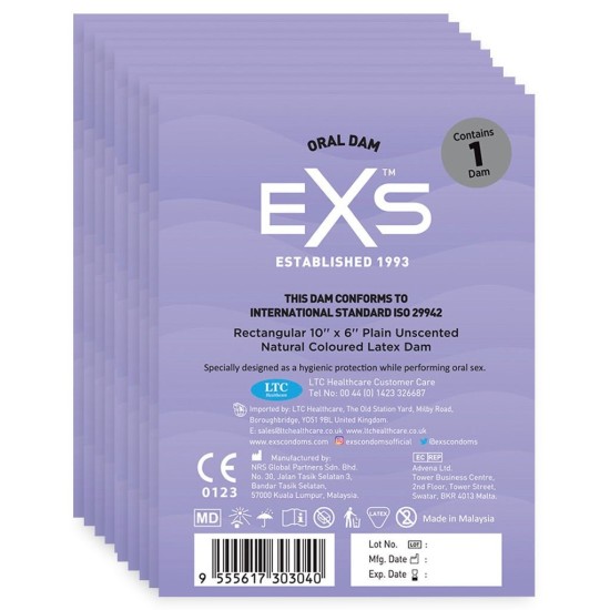 Bezpečný orální sex a příjemný zážitek zároveň? Není problém! Jedinečné EXS Oral Latex Dams jsou roušky vyrobené z latexu a poskytují ochrannou bariéru při orálním sexu. Ještě větší zážitek poskytují při používání s ochuceným lubrikantem. Spolehněte se na EXS Latex Dams s CE certifikující splňující ISO normy.