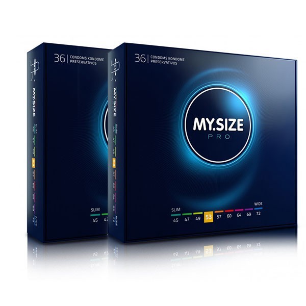 MY.SIZE Pro mají největší výběr šířek kondomů. Na výběr máš extra malé kondomy: 45mm, 47mm, 49mm, standardní velikosti: 53mm, 57mm, extra velké kondomy: 60mm, 64mm, 69mm a 72mm. Všechny veľkosti MY.SIZE kondomů najdeš zde.