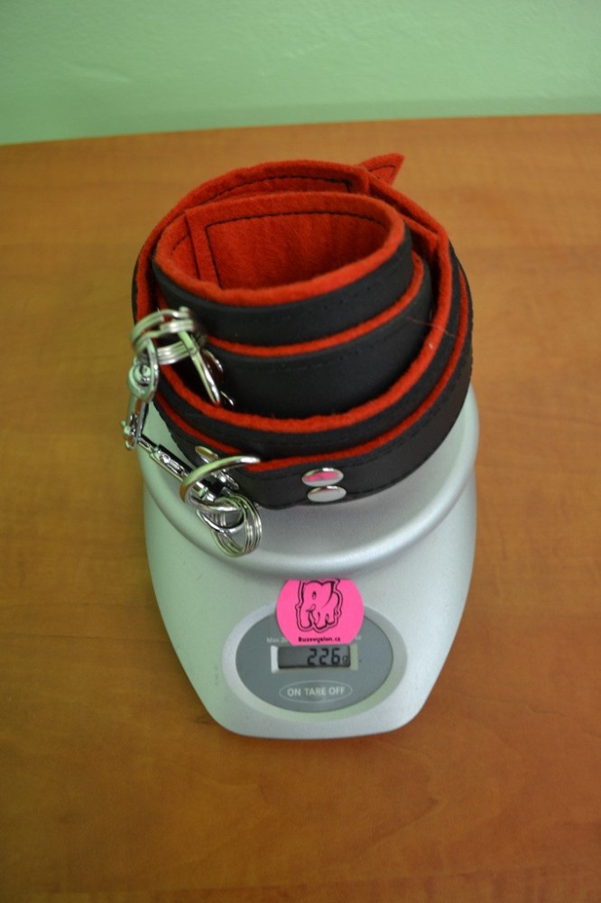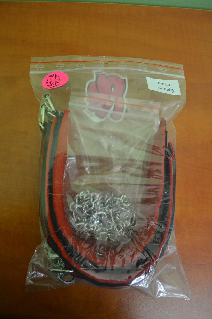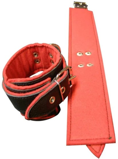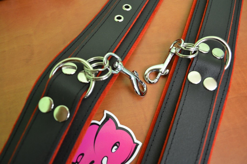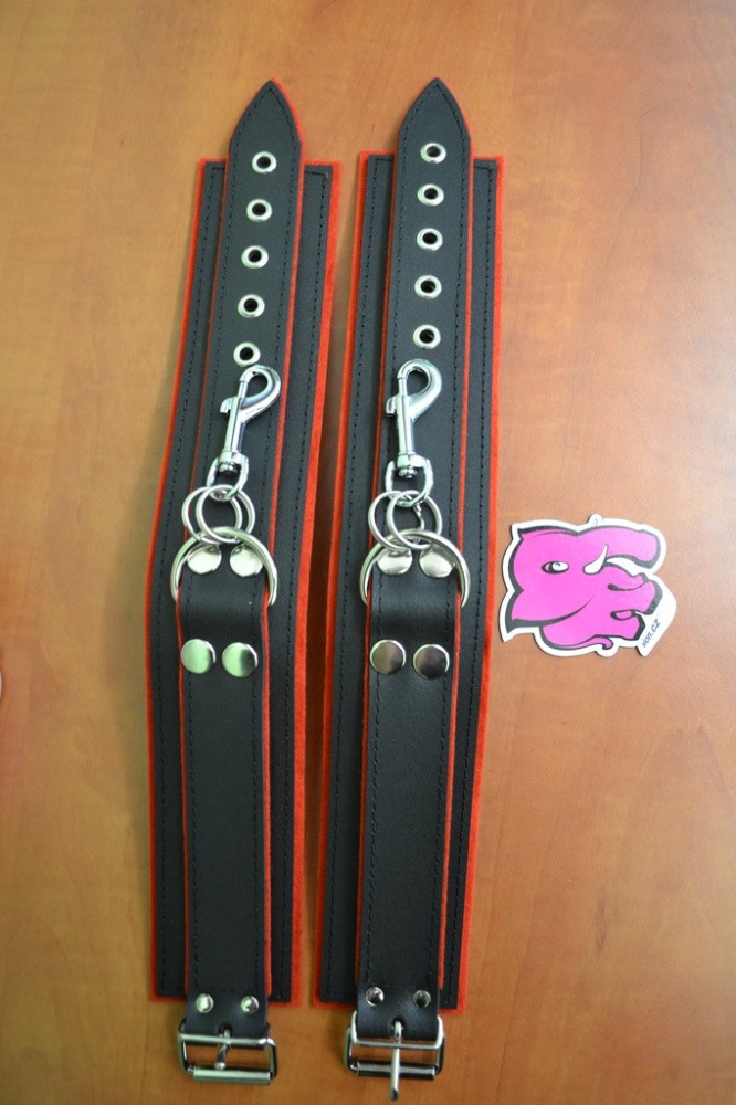 Kožená pouta na nohy BlackRed + dárek řetízky navíc