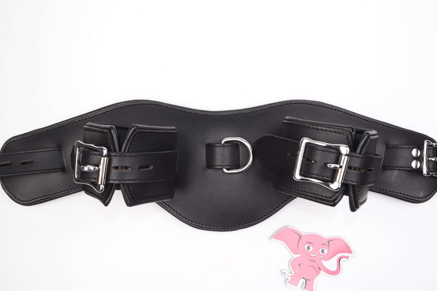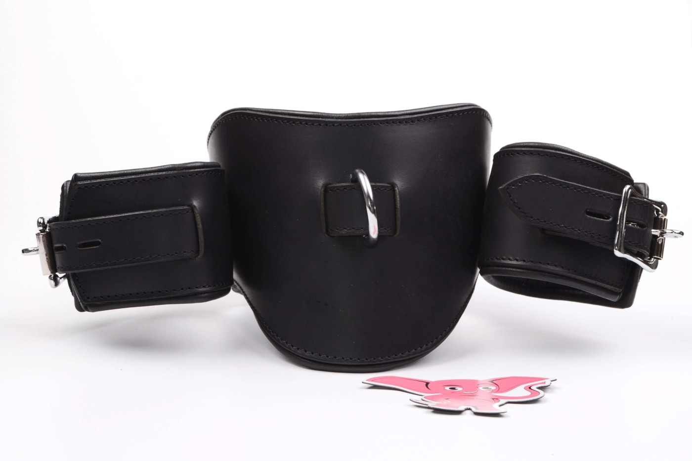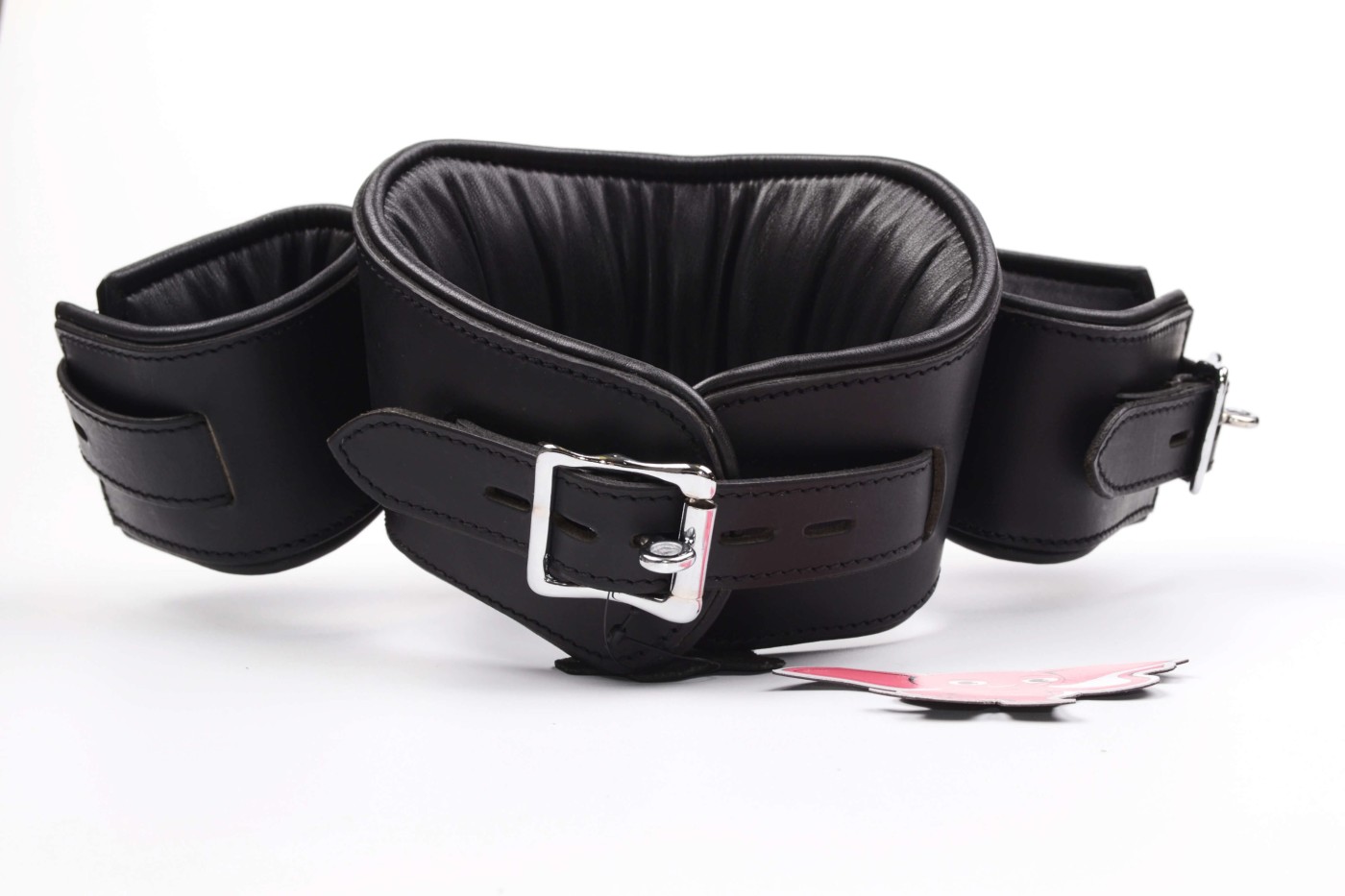 Bytelný kožený obojek s pouty Leatherix RestrainMe submisivního partnera spolehlivě znehybní a znemožní mu jakýkoliv pohyb hlavou. Tato striktní hračka proto okoření i tvrdé BDSM praktiky. Díky měkkému polstrování se ale pomůcka pohodlně nosí a neodírá svému nositeli krk ani zápěstí. A protože jsou pouta napevno přidělaná k límci, nepotřebujete ke spoutání drahé polovičky postel ani jiný nábytek. Tato bondážní pomůcka zkrotí každého neposlušného partnera, nad kterým jeho pán nebo paní převezme absolutní moc a plnou zodpovědnost. Může si pak s jeho tělem dělat, co se mu zlíbí, a rozhodnout, které pomůcky si přizve k hrátkám.