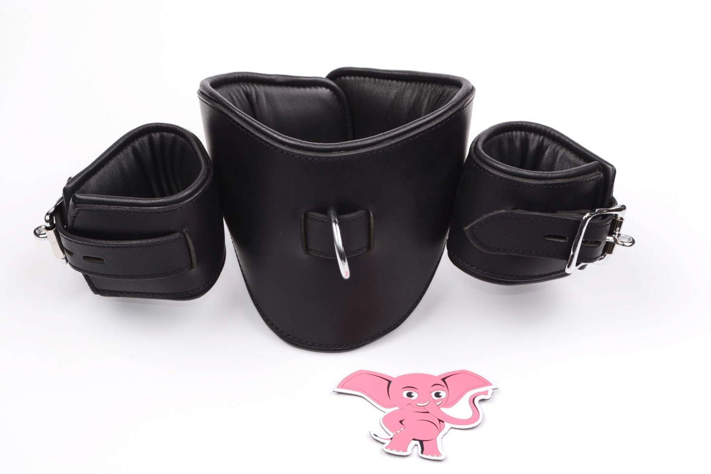 Kožený obojek s pouty na ruce Leatherix RestrainMe