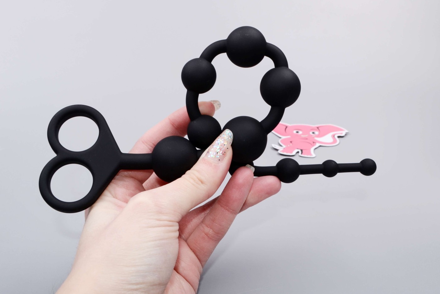 Černé anální kuličky s odstupňovanou velikostí se díky své ohebnosti hravě přizpůsobí tělu v každé poloze. Rukojeť v podobě dvou oček připomíná trochu vývrtku. Do otvorů ale snadno provlečete prsty a pomůcku pak jednoduše vytáhnete ze zadečku.
