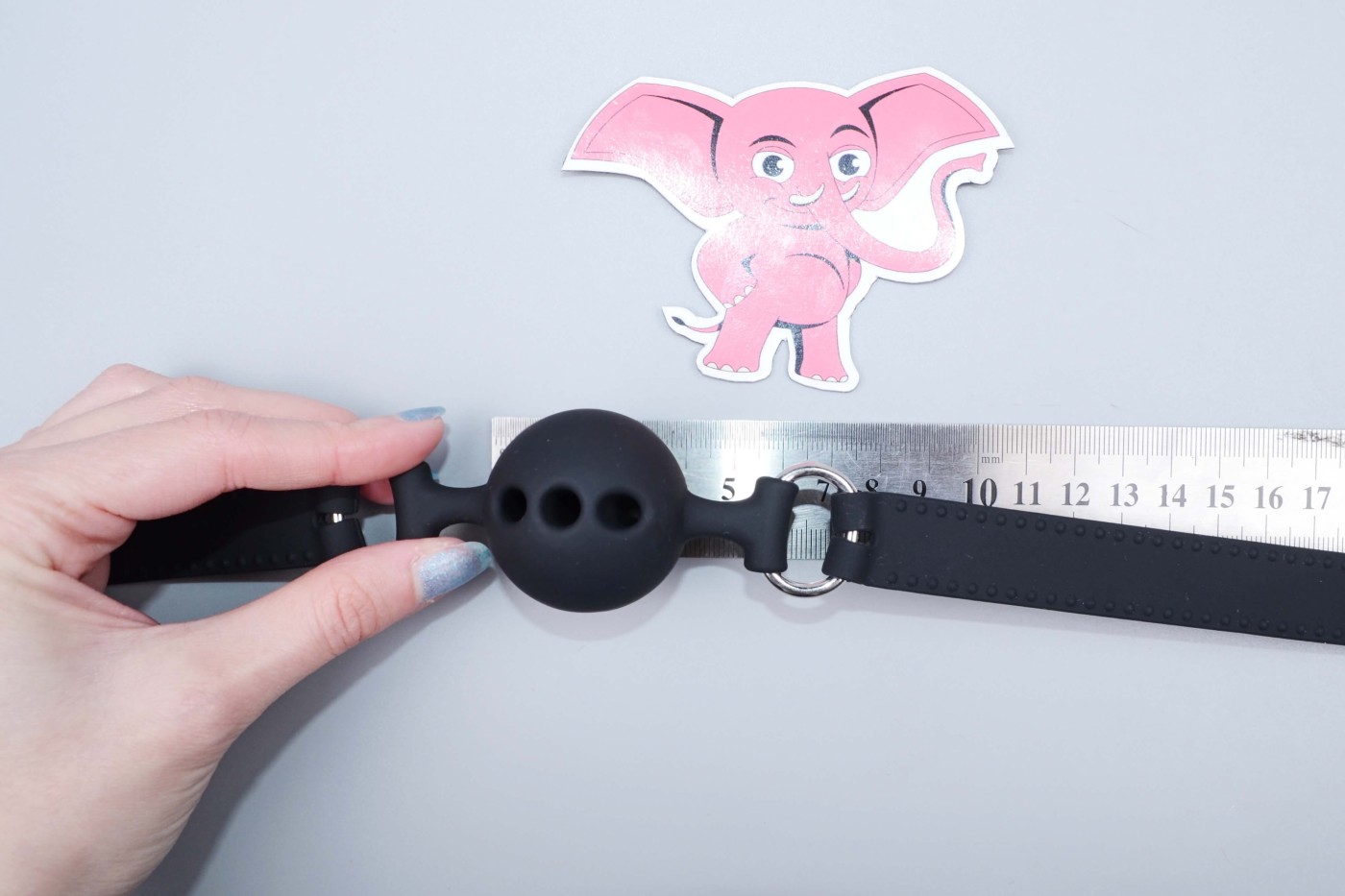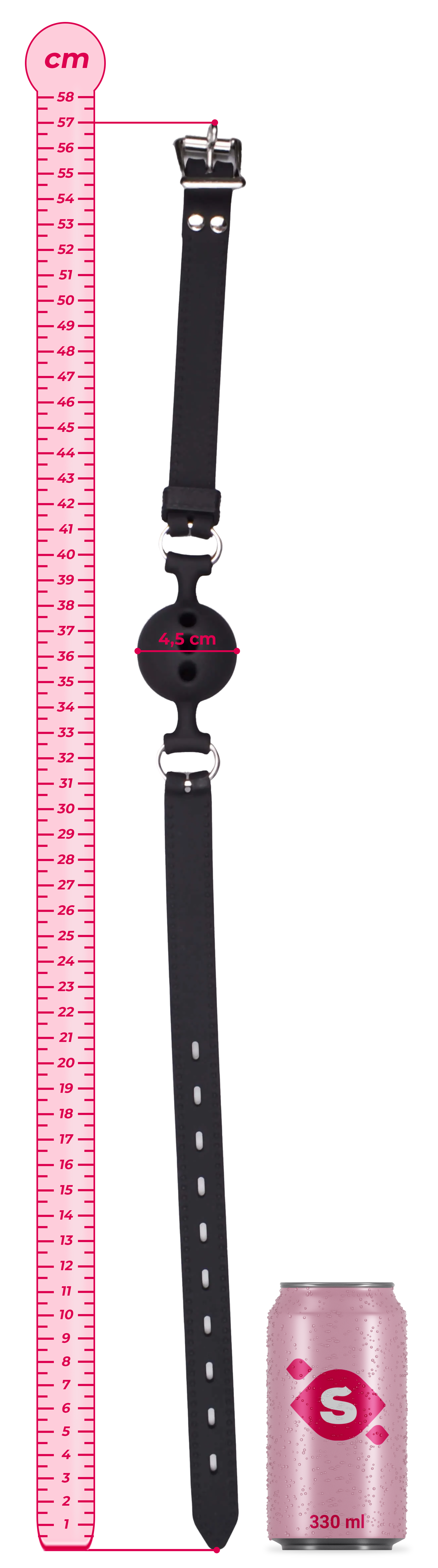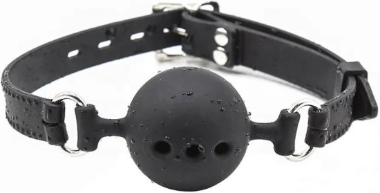Roubík působí dominantním dojmem a svým tvarem nám připomíná náramek. Kulička má tři praktické průduchy, díky kterým se může submisivní partner nadechnout i při spankingu nebo jiných tvrdých odměnách svého dominantního pána. Roubík se dobře drží v ruce a k páskům je připevněný pomocí pevných kovových kroužků. Nastavitelné pásky s praktickou přezkou snadno utáhnete nebo naopak povolíte.