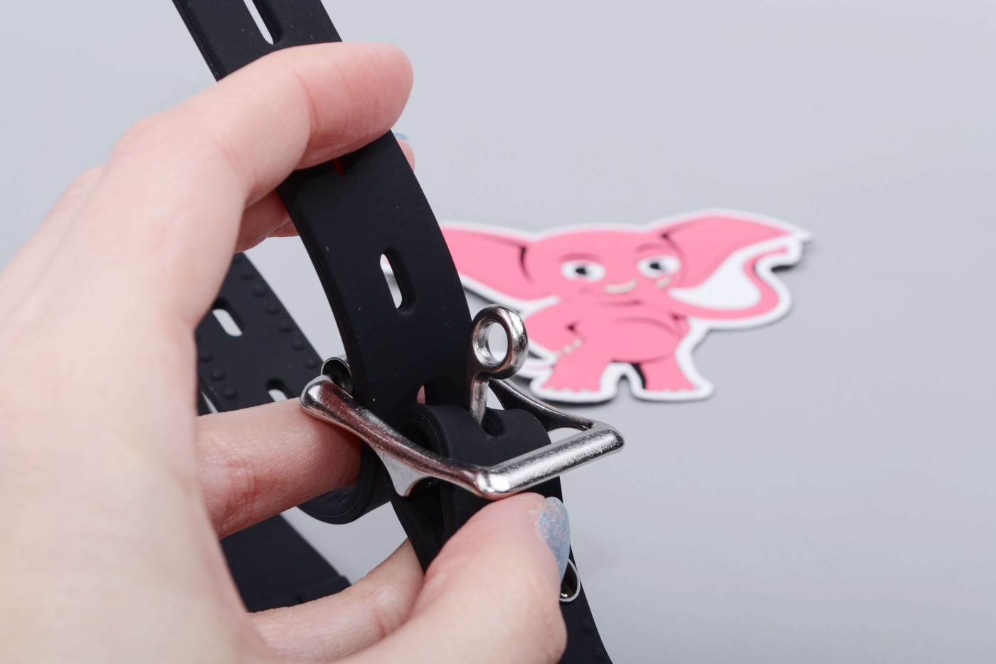 Sametově hebký silikon má neutrální vůni a je bezpečný pro tělo, proto se často používá i ve zdravotnictví. Pásky roubíku neodírají jemnou kůži obličeje.