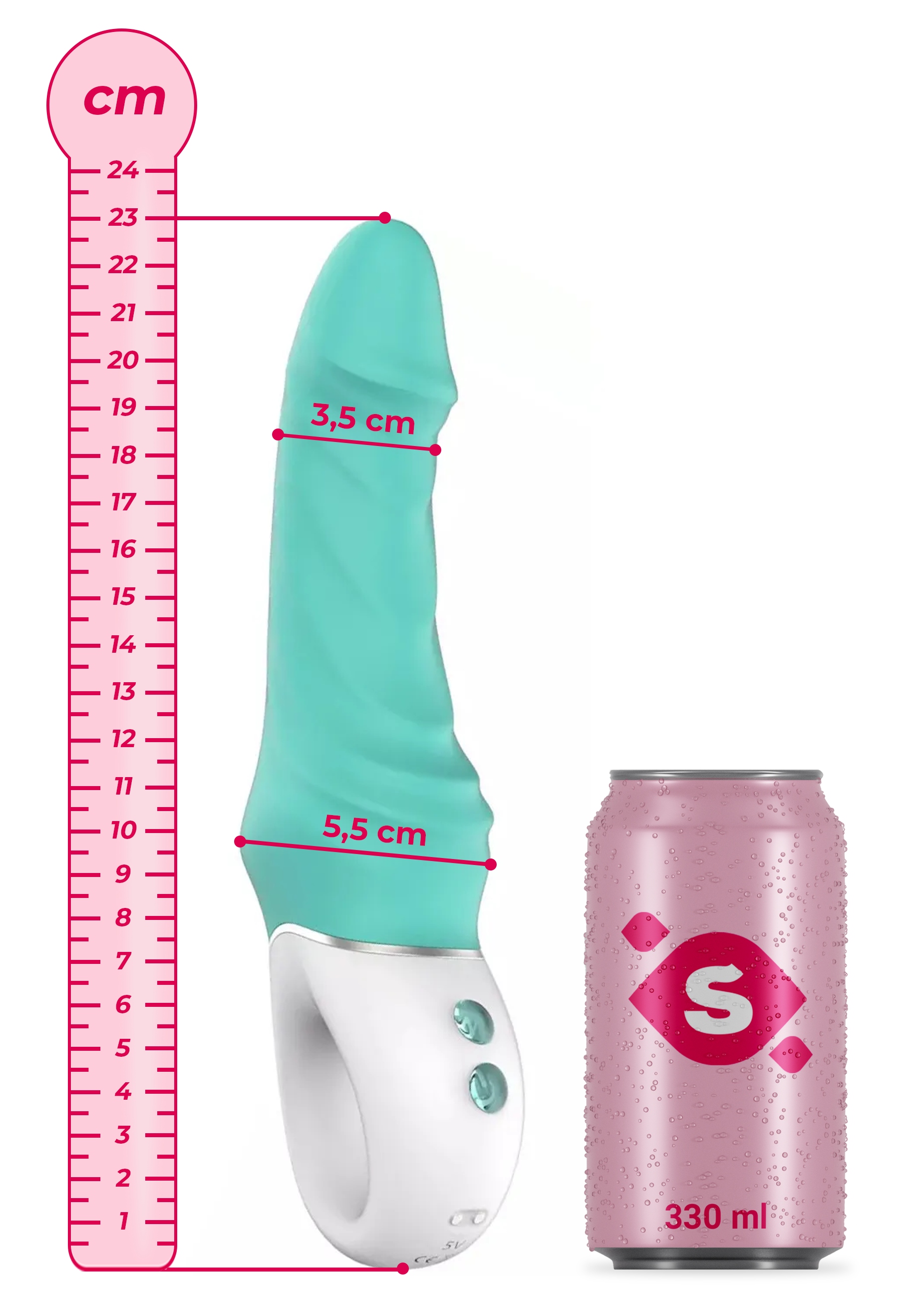 Díky středně velkým rozměrům se hračka snadno zavádí a schováte ji taky do každého šuplíku neřesti.