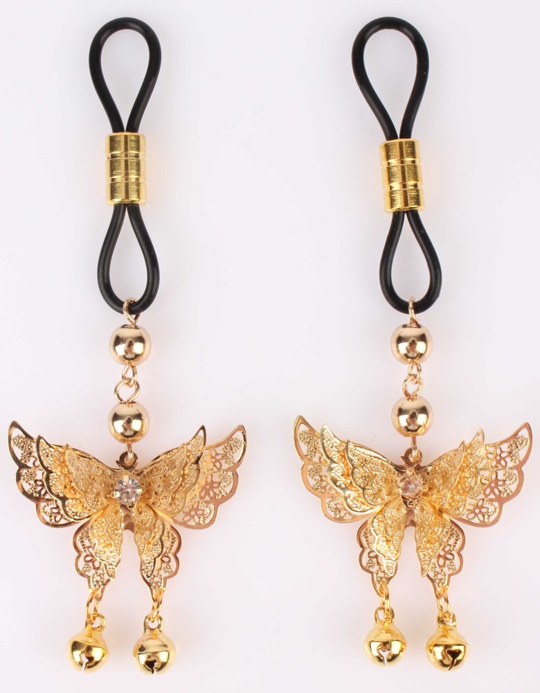 Roztomilé svorky na bradavky v designu motýlků ozdobí prsa jako šperk a po utažení silikonových bužírek svému nositeli nezpůsobí bolest. Hodí se proto i pro začátečníky, kteří netouží po BDSM hrátkách, ale hledají krásný doplněk pro oživení předehry. Díky spolehlivé regulaci svorky drží na malých i velkých bradavkách a nepadají. Dámy, oblečte si sexy spodní prádlo, nasaďte si na bradavky zlaté svorky a předveďte partnerovi vzrušující podívanou. Přitáhnete pozornost i jeho zvědavé prsty k jedné z nejcitlivějších erotogenních zón na svém těle.