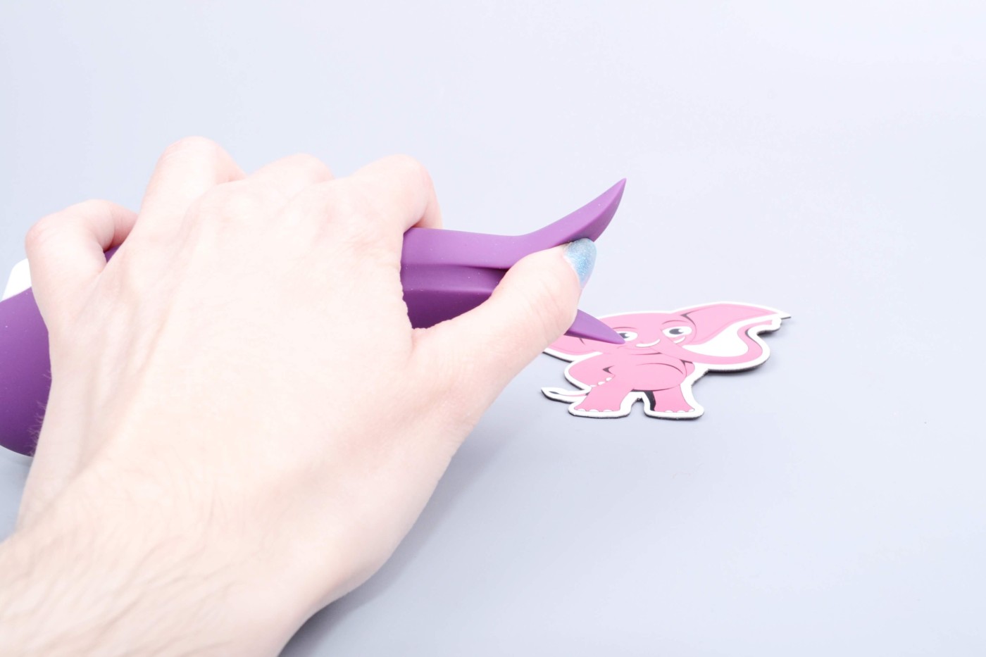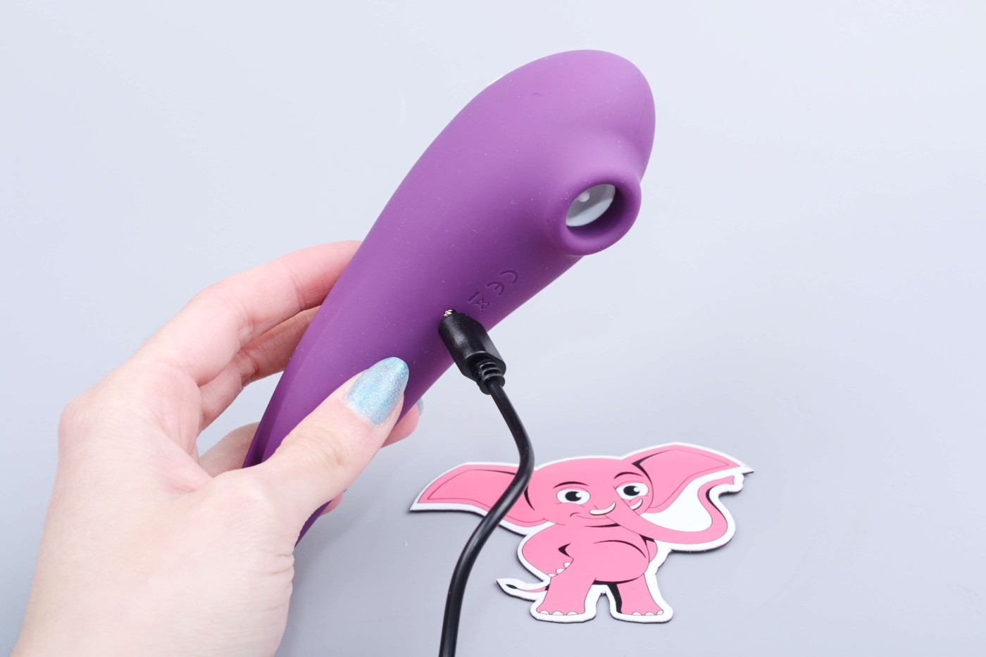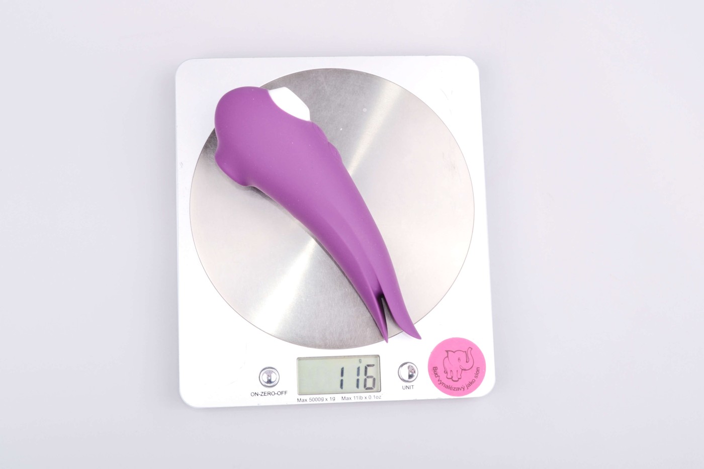 Vibrátor působí sofistikovaným dojmem a svým tvarem připomíná delfína. Na hřbetu pomůcky najdete, kromě ovládacího panelu, klasickou stimulační hubičku na dráždění klitorisu. Uvnitř druhé tlakové části se ukrývá tenká silikonová tyčinka, která spolu s tlakovými vlnami rytmicky poklepává na klitoris. Vibrační rukojeť se dvěma zobáčky, která se dobře drží v ruce, rozmazlí ženský i mužský klín nebo bradavky.