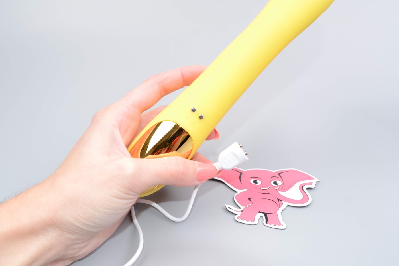 Vibrátor posílá výrobce z cca 1/3 nabitý, přesto ho doporučujeme před prvním použitím nabít do plna, abyste prodloužili jeho výdrž i životnost. Pomůcku dobijete pomocí magnetického USB kabelu, který najdete v balení. Stačí, když konec se dvěma kovovými výčnělky přiložíte ke dvěma stříbrným bodům, umístěným na zadní straně rukojeti nad zlatým plíškem a druhý konec kabelu připojíte k powerbance nebo přes napájecí adaptér do elektrické zásuvky. Během nabíjení, které trvá cca 2,5 hodiny, bliká fialová kontrolka nad ovládacím panelem. V momentě nabití zůstane svítit. Na jedno nabití pak zvládne vibrátor vibrovat cca 1,5 hodiny v kuse.